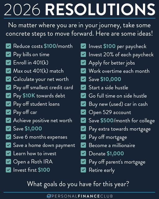 “Retire early” might not be on your 2026 resolution list, but maybe “save $100” can be! Here’s the crazy thing about huge long term goals: They are all accomplished with small individual steps. Sometimes I think about this when I’m going for a long hike. I can see the peak of a mountain far off in the distance. It seems impossibly far away. It’s defeating to just think about trying to get all the way up there. How could you possibly do it with just your feet?! But then I look down, and take a single step. That wasn’t so bad. Then you just keep taking more individual steps. Then, before you know it you’re on top of the mountain! No individual step was a monumental effort, but in combination it achieved something that seemed so daunting. And it got easier (and more fun!) once you started.
