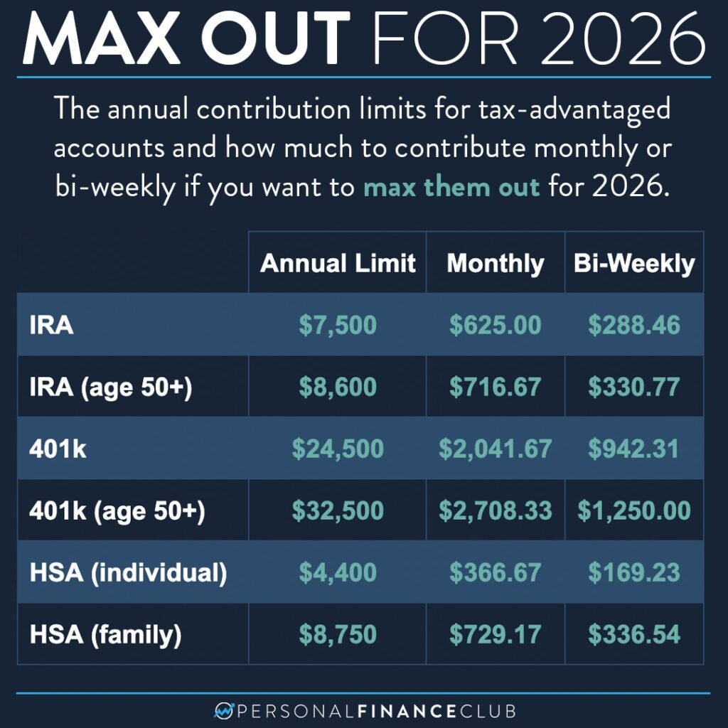 How much do I need to invest to max out my 401k, HSA, and Roth IRA for 2026?
